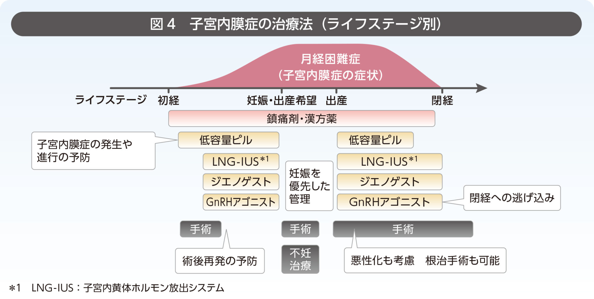 有効性と安全性を念頭におきつつ、それぞれのライフステージに合わせて適切なタイミングで治療法を選択していくことが大切です。